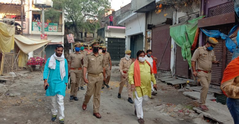 लोगों ने बभनान हरैया चौराहा सब्जी मंडी होते हुए रामलीला मैदान विजय नगर चौराहा के रास्ते से जा रहे पुलिसकर्मियों पर की फूलों की बारिश