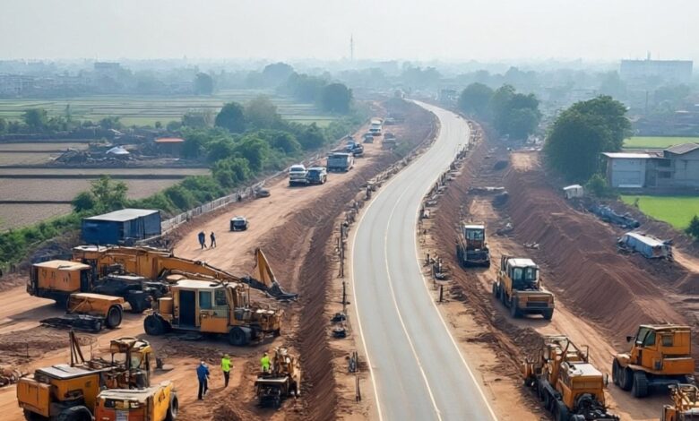 🚧 8-लेन सड़क के साथ सर्विस रोड का निर्माण