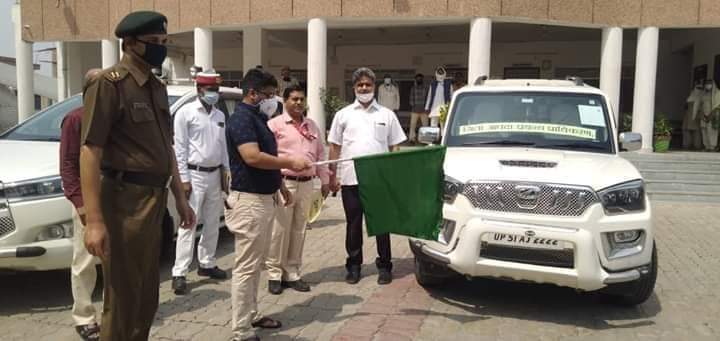 बस्ती-कोरोना वायरस के रोकथाम एवं बचाव के लिए लोगों में जन जागरूकता पैदा करने के लिए जिलाधिकारी आशुतोष निरंजन ने जिला आपदा प्रबंधन प्राधिकरण द्वारा संचालित प्रचार वाहन को हरी झंडी दिखाकर कलेक्ट्रेट परिसर से रवाना किया