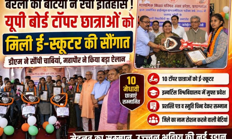ЁЯПЖ UP Board Toppers: рдпреВрдкреА рдмреЛрд░реНрдб рдореЗрдВ рдХрдорд╛рд▓ рдХрд░рдиреЗ рд╡рд╛рд▓реА рдмреЗрдЯрд┐рдпреЛрдВ рдХреЛ рдЗрдирд╛рдо, рдмрд░реЗрд▓реА рдореЗрдВ рдИ-рд╕реНрдХреВрдЯрд░ рджреЗрдХрд░ рдХрд┐рдпрд╛ рд╕рдореНрдорд╛рдирд┐рддред