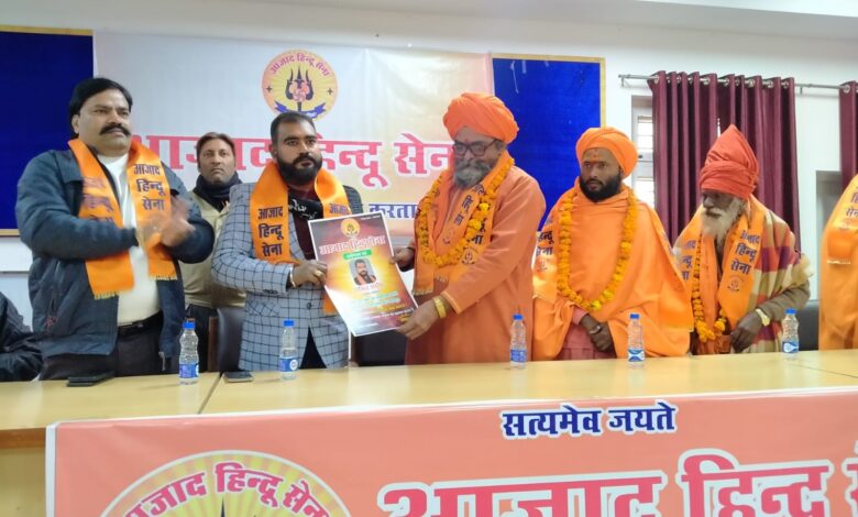 बरेली :- आजाद हिंदू सेना का स्थापना हेतु कार्यक्रम अर्बन कॉपरेटिव सभागार में आयोजित किया गया कार्यक्रम में मुख्य अतिथि लक्ष्मण गिरि महाराज , कार्यक्रम अध्यक्ष अमित राठौर , संयोजक रवि शंकर खटीक , राष्ट्रीय संरक्षक अनिल पाटिल ,
