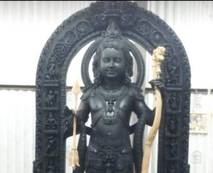 सोशल मीडिया पर रामलला की जो मूर्ति वायरल हो रही है उसका शुक्रवार को अनावरण हो गया है। काले पत्थर से बनी इस प्रतिमा की आंख पर पीले रंग के कपड़ा बांधा गया है। विश्व हिंदू परिषद (विहिप) के पदाधिकारी शरद शर्मा ने बताया कि रामलला की प्रतिमा की आंखों पर पीला रंग का कपड़ा बंधा है और प्रतिमा को गुलाब के फूलों की माला पहनाई गई है। विश्व हिंदू परिषद ने रामलला की प्रतिमा की तस्वीर जारी की और यह प्रतिमा खड़ी मुद्रा में है। अयोध्या स्थित राममंदिर में आगामी 22 जनवरी को होने वाले प्राण प्रतिष्ठा समारोह से पहले भगवान राम की नयी प्रतिमा बृहस्पतिवार अपराह्न में राम जन्मभूमि मंदिर के गर्भगृह में रखी गई। मैसूरु के मूर्तिकार अरुण योगीराज द्वारा बनाई गई 51 इंच की रामलला की प्रतिमा को पिछली रात मंदिर में लाया गया था।