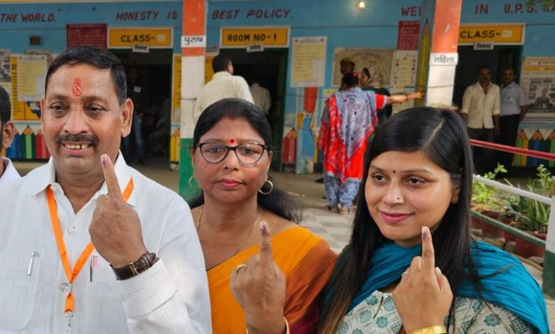 लोकसभा बरेली, आंवला सीट पर नेताओं ने किया वोट, परिवार के साथ पहुंचे मतदान स्थल ।