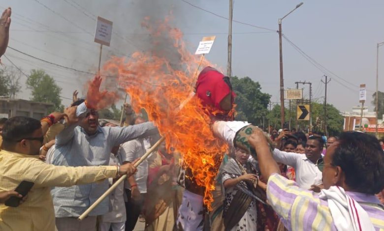 बरेली। नवाबगंज कस्बे में बाबा साहब डॉ. भीमराव आंबेडकर की तस्वीर से कथित छेड़छाड़ के मामले ने तूल पकड़ लिया है। मंगलवार को इस घटना के विरोध में भारतीय जनता पार्टी के कार्यकर्ताओं ने सपा प्रमुख अखिलेश यादव का पुतला फूंककर आक्रोश जताया। इस दौरान कार्यकर्ताओं ने जमकर नारेबाजी करते हुए घटना की कड़ी निंदा की।