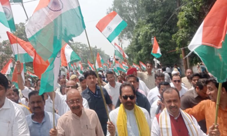 रामपुर में 1100 फीट लंबी तिरंगा यात्रा, सेना की सफलता का किया अभिनंदन
