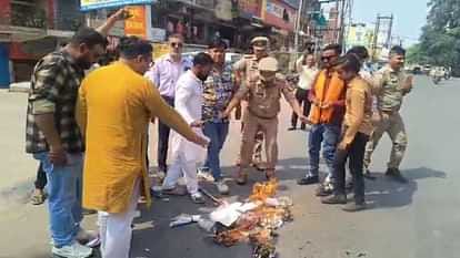 इधर, शहर में भी बजरंग दल के कार्यकर्ताओं ने विरोध प्रदर्शन किया। प्रेमनगर स्थित श्रीकृष्ण लीला स्थल पर पुलिस के सामने पशुपालन मंत्री धर्मपाल सिंह का पुतला फूंका गया। मंत्री के विरुद्ध जमकर नारेबाजी की गई। मुर्दाबाद के नारे लगाए गए। बजरंग दल के महानगर संयोजक केवलानंद ने कहा कि मंत्री की ओर से दिया गया विवादित बयान से पूरा बजरंग दल आहत है। मंत्री को कार्यकर्ताओं से तुरंत माफी मांगनी चाहिए नहीं तो प्रदेशभर में बजरंग दल के कार्यकर्ता आंदोलन करेंगे।