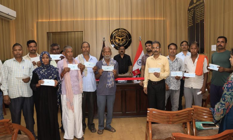 किसानों के चेहरों पर लौटी मुस्कान: जिलाधिकारी ने बांटे सहायता राशि के चेक, खेत-खलिहान योजना बनी संकट में सहारा