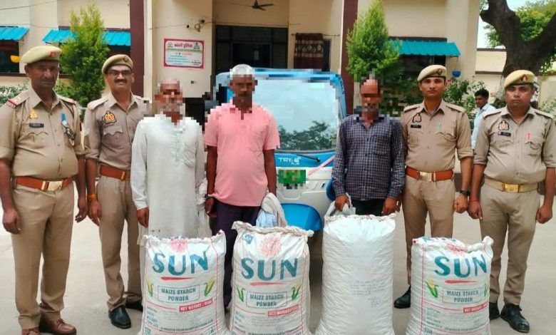 जनपद बरेली में नशे के खिलाफ चलाए जा रहे विशेष अभियान के तहत आंवला पुलिस ने एक बड़ी कामयाबी हासिल की है। पुलिस ने ग्राम किशनपुर गौटिया के पास तीन तस्करों को रंगे हाथ धर दबोचा। आरोपियों के पास से 42 किलो डोडा बरामद हुआ है, जिसे चार प्लास्टिक के कट्टों में छिपाया गया था।