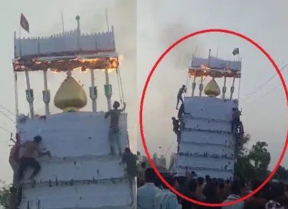 लापरवाही पड़ी भारी,हाईटेंशन लाइन से टकराकर ताजिया जला, दरोगा लाइन हाजिर