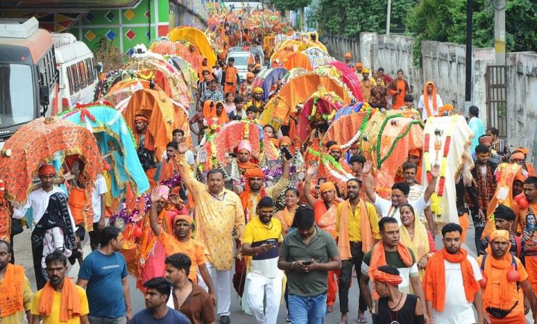 कांवड़ यात्रा बनी आस्था की मिसाल, 10 फीट ऊंची शिव प्रतिमा बनी आकर्षण
