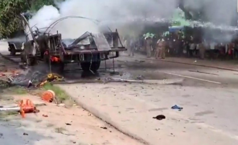 घटना के बाद हाईवे पर लंबा जाम लग गया और अफरातफरी मच गई। मौके पर पहुंची पुलिस ने हालात को काबू में किया और आग बुझाने के लिए दमकल को बुलाया गया। पुलिस अधिकारियों ने शांति बनाए रखने की अपील की है।