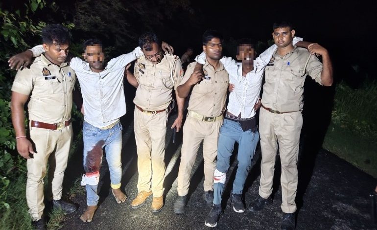 चेकिंग के दौरान लूट के दो आरोपी पुलिस मुठभेड़ में घायल, अवैध हथियार व लूट का माल बरामद