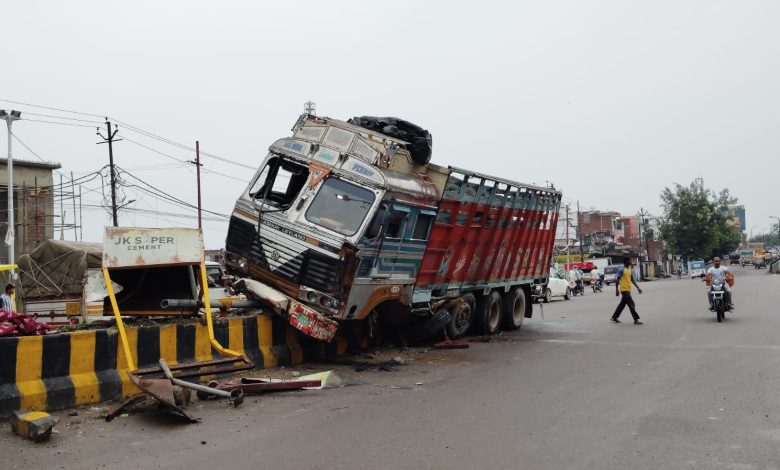 लोहे से लदा ट्रक डिवाइडर से टकराया, देखते ही देखते लगी भीषण आग, मचा हड़कंप