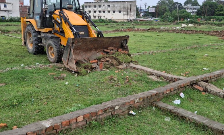 श्री तुषार अग्रवाल द्वारा 03 बीघा क्षेत्र में सड़क, नाली, गेट व प्लॉटिंग का निर्माण कराया जा रहा था।