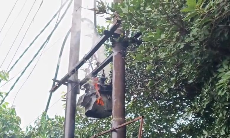 गांधी उद्यान के पास ट्रांसफार्मर में धमाका और आग सैकड़ों घर अंधेरे में, बिजली विभाग नदारद