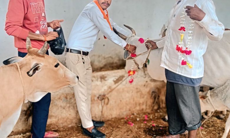 इस अवसर पर अंतरराष्ट्रीय हिंदू सेना के जिलाध्यक्ष अजय पटेल ने गौमाता का पूजन कर उन्हें माल्यार्पण किया तथा मिठाई और केला खिलाकर आशीर्वाद लिया।