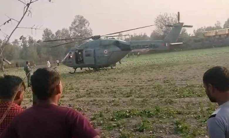 तकनीकी खराबी के बाद खेत में उतरा एयरफोर्स हेलीकॉप्टर, ग्रामीणों में अफरा-तफरी