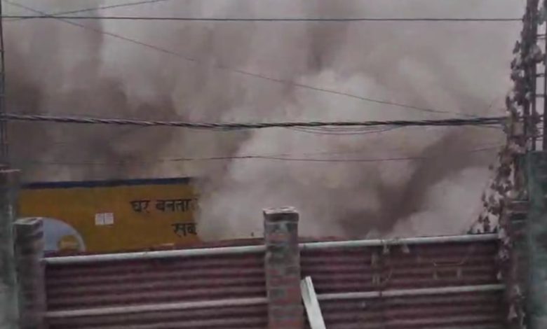 तीन मंजिला शोरूम का ध्वस्तीकरण, रोड पर लगा लंबा जाम